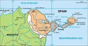 ![]() Perejil Island at far left, near Ceuta  | |||||||