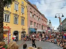The Pflasterspektakel (pronounced [ˈpflastɐʃpɛkˌtakl̩], German for pavement spectacle) is an annual street art festival in Linz, the capital of Upper Austria. It includes musical acts, juggling, acrobatics, pantomime, improvisational theatre, clownery, fire dancing, painting, samba parades, as well as a programme for children, and is held on three days in July in and around the main square and the Landstraße. In 2010, about 400 artists from over forty nations participated in the event.[1][2]