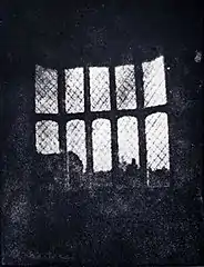 Meanwhile, a British inventor, William Fox Talbot, had succeeded in making crude but reasonably light-fast silver images on paper as early as 1834 but had kept his work secret. After reading about Daguerre's invention in January 1839, Talbot published his hitherto secret method and set about improving on it. At first, like other pre-daguerreotype processes, Talbot's paper-based photography typically required hours-long exposures in the camera, but in 1840 he created the calotype process, which used the chemical development of a latent image to greatly reduce the exposure needed and compete with the daguerreotype. In both its original and calotype forms, Talbot's process, unlike Daguerre's, created a translucent negative which could be used to print multiple positive copies; this is the basis of most modern chemical photography up to the present day, as daguerreotypes could only be replicated by rephotographing them with a camera.[29] Talbot's famous tiny paper negative of the Oriel window in Lacock Abbey, one of a number of camera photographs he made in the summer of 1835, may be the oldest camera negative in existence.[30][31]