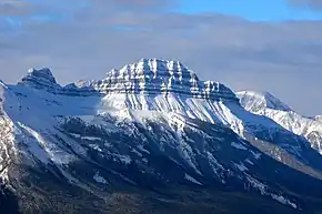Like other mountains in Banff Park, Pilot Mountain is composed of sedimentary rock laid down from the Precambrian to Jurassic periods.[6] Formed in shallow seas, this sedimentary rock was pushed east and over the top of younger rock during the Laramide orogeny.[7]