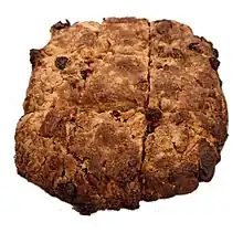 The pizza dolce di Beridde (Italian for "sweet pizza of Beridde"), also known as the pizza ebraica (Hebrew pizza)[1] or diamanti romani (Roman diamonds),[2] is an unleavened sweet bread typical of the city of Rome. This traditional dessert is prepared by the Roman Jewish community on the occasion of a Brit milah (ceremony of circumcision).[3]