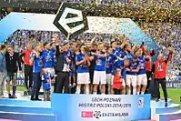 - ↑ Lech Poznań won the championship after two final day games (Wisła Kraków vs Legia Warsaw 0–6; ŁKS Łódź vs Olimpia Poznań 7–1) had been cancelled due to the never proven allegations of "unsportsmanlike conduct during the game".[19]