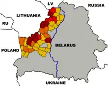 According to the census, there are 396,000 Poles living in Belarus (official 1999 census;[14] the estimates are higher according to various NGOs). They form the second-largest ethnic minority in the country, after Russians. Most Poles live in western Belarus (including 294,000 in the Grodno Region, Polish: Grodzieńszczyzna).