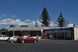 Port Hughes is a popular tourist destination, with attractions including a Greg Norman-designed links style golf course, the beach and the historic timber jetty. The beach is regarded as safe for swimming,[9] which attracts families going on vacation. People fish in Port Hughes from the jetty or from boats in Spencer Gulf which can be easily launched at the local boat ramp. Boats are also available for charter to go fishing. Tourists and visitors can find accommodation at the caravan park, which features onsite cabins and villas. Port Hughes also has a general store and tavern.
