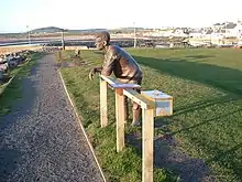 A statue of a fisherman overlooks the harbour: once made of concrete, it has been cast in bronze. The statue was part-funded by the millennium lottery fund. In front of the statue is a plaque with the first verse of the poem "Leisure" by W. H. Davies.