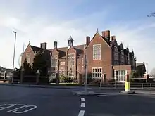 In 1976, with the removal of the Direct Grant, it stopped being a grammar school under the Tripartite System, though it kept the term as part of its name, and at the same time began to accept female pupils.[5] The Upper Junior School (Years 5–6) is situated in the original Victorian building which once contained the whole Grammar School. The Nursery, Lower Junior School (Reception to Year 4), Middle School and Upper School are located across the road on the High Street. The school colours are red, black and gold, and the school motto is Praemia Virtutis Honores (English: Honours are the rewards of virtue). The current Headmaster is Mr David Wickes, replacing Dr Anne Cotton. The school spent £6 million on a new Science building in 2011.[6]