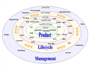 The core of PLM (product lifecycle management) is the creation and central management of all product data and the technology used to access this information and knowledge. PLM as a discipline emerged from tools such as CAD, CAM and PDM, but can be viewed as the integration of these tools with methods, people and the processes through all stages of a product's life.[12][13] It is not just about software technology but is also a business strategy.[14]