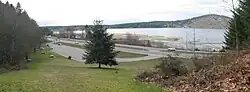 Today the site is marked by a rest area on the southbound side of Highway 19. No houses or other buildings remain. The widened highway has encompassed the land once occupied by the settlement. The only visible sign that remains is the worn pilings of the sawmill complex which protrude from the mudflats of the bay.[1] The Red Gap name only lives on in a supermarket at nearby Nanoose Bay.