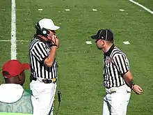 Referee (left) talking with the replay official