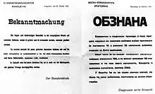 German announcement of killing 2300 civilians in Kragujevac massacre as retaliation for 10 killed German soldiers. Nazi-occupied Serbia, 1941.