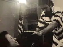 On June 24, 1994, Rossi's wife, Sherrie Lynn, was found near death in a coma on the side of a Pennsylvania road. She had a crushed skull and was left covered in blood; her injuries were so severe that she needed to wear a helmet.[18][35][36][37] Her rescuers thought she had been in a traffic accident, and called for an ambulance.[38] Ninety minutes later, at 8:05 pm, Richard Rossi called police, and claimed that men killed his wife and shot at him twice.[38] But when police came to interview him, his story changed, first claiming that a man that looked like him got into the passenger side of the car, then that the man who looked like him attacked from the driver's side.[38] Rossi had a cellular phone available, but said he pursued the assailant instead of dialing for help because he was a "good runner."[38] Rossi also changed his story on where the assailants approached from, first saying they were in a white car, then that they "came out of the woods out of nowhere."[38] Police testified that Rossi told them a "satanic cult" was trying to frame him; Rossi denies this.[38][39][40] Rossi was wearing only a pair of tan shorts when police interviewed him; Rossi claimed that he lost his shirt running through the woods, but did not explain why he was barefoot.[38] Several witnesses reported seeing a man with long hair near the Rossi's cars, and State Police reports suggested the presence of two other cars, one blue and one white.[41]