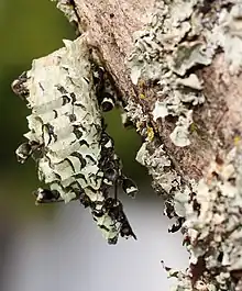 Ropalidia amabala is an African species of paper wasp, described in 2022 based on the targeted search for a taxon that was firstly observed in the citizen science platform iNaturalist.[1] The name originates from the Zulu word amabala, meaning "spots", and refers to the six spots integrated with the posterior band on T2 and S2, characteristic for this species. In contrast to other mainland African Ropalidia species, this species builds nests directly on the tree trunks, especially in Brachychiton. The nest-building material is a nearby lichen, which gives a nest greyish colour and blends it perfectly into the surrounding area.[2]