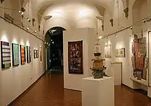The SACI Gallery was designed by Architect Paolo Bulletti and its renovation was made possible in part through a donation by artist Roger Phillips. The SACI Gallery is approximately 675 square feet (62.7 m2), has high vaulted ceilings, movable partition walls, and is adjacent to a courtyard garden.