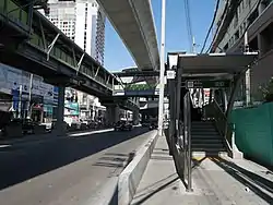 The area served by nearby the Bearing (E14) and Samrong Stations (E15) of the BTS skytrain, whose Sukhumvit Line runs above Sukhumvit Road (Highway 3).