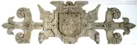 In about 1620 a plaster escutcheon was affixed inside the house showing the de Via arms of the Davie family impaled with the arms of Northcote,[12] the arms of the family of his first wife Katherine Northcote (d.1620).[13]
