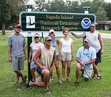 The Sapelo Island National Estuarine Research Reserve is a 6,110-acre (2,470 ha) coastal plain estuary, located in the U.S. State of Georgia, protected on its seaward side by a Pleistocene barrier island. It was established in 1976.