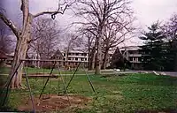 Political activism has played a crucial role in forming the spirit of the Sarah Lawrence community since the early years of the college. As early as 1938, students were volunteering in working-class sections of Yonkers, New York to help bring equality and educational opportunities to poor and minority citizens, and the Sarah Lawrence College War Board, organized by students in the fall of 1942, sought to aid troops fighting in World War II. During a time when the college's enrollment consisted of only 293 students, 204 signed up as volunteers during the first week of the War Board.[35] During the so-called McCarthy Years, a number of Sarah Lawrence's faculty members were accused by the American Legion of being sympathetic to the Communist Party, and were called before the Jenner Committee.[36] Since that time, activism has played a central role in student life, with movements for civil rights and against the Vietnam War in the 1960s and for student and faculty diversity in the 1980s. Also in the 1960s, students established an Upward Bound program for students from lower-income and poverty areas to prepare for college.[37] Theatre Outreach, the Child Development Institute, the Empowering Teachers Program, the Community Writers program, the Office of Community Partnership, and the Fulbright High School Writers Program are among the many programs founded since the 1970s to provide services to the larger community. In the late 1980s, students occupied Westlands, the main administrative building for the campus, in a sit-in for wider diversity. Students occupied Westlands again in 2016, in a sit-in supporting improved wages and safer working conditions for the college's recently unionized facilities workers. For many years, the college has been considered as being at the vanguard of the gay rights movement and many other progressive causes.