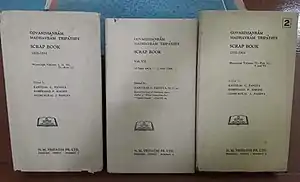![]() Volumes of Scrap Book edited by કાન્તિલાલ પંડ્યા (whose name is romanized as Kantilal Pandya), Sanmukhlal Pandya and Ramprasad Bakshi  | |