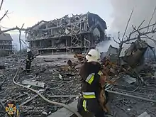 - 1 2 "Ukraine war: Russian missile strikes kill 21 in Odesa region – emergency service". BBC News. 1 July 2022.