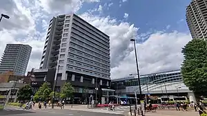 An extensive commercial and housing area called "Eminade Shakujii-kōen" is expected to be completed by fiscal year 2015. Opening in three stages, the first stage of this project was opened on October 2, 2013, as "Emio Shakujii-kōen" at a cost of ¥900 million. Located largely towards the west exit and in close proximity to the station complex, it saw the opening of nineteen stores including a café, a general store, and the supermarket Ito Yokado.[13][14] The second stage of the project, "Emio Shakujii-kōen East" is expected to be completed on August 21, 2014. This stage will see the opening of six stores comprising two fashion establishments (Muji and Buona Vita), an opticians and three catering establishments. Sections of the second stage comprising a daycare center, a pharmacist and a pet-care center were opened prior to the main section over the course of 2014.[15]