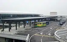 Local taxis, and often some taxis from Dongguan, can pick up passengers there from three designated waiting areas. These areas have the capacity to handle 21 taxi cabs picking up passengers simultaneously.[43]