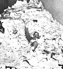 Sidney Smith surrounded by letters received in 1929 after he killed The Gumps' Mary Gold, the first character to die in a continuity comic strip.