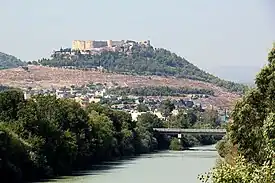 Silifke (Roman: Seleucia; Byzantine: kastron Seleukeias; Arab: Salûqiya; Armenian: Selefkia or Selewkia; Frankish: Le Selef) was an important city in antiquity. Founded by and named after Seleucus I Nicator (359 BC-281 BC), one of the Diadochi who served as an infantry general under Alexander the Great. Few traces of the 3rd-century-B.C. settlement survive. There are fragments of a late Roman theater, necropolis, bath, 2nd-century temple, as well as a 5th-century Byzantines cistern. The 1st-century-A.D. stone bridge built during the reign of Emperor Vespasian was replaced in the 1870s. In the late 7th century, to counter Arab invasions, the Byzantines fortified the acropolis, which is situated above the Calycadnus River. The site had a weapons factory and was the administrative center for the coastal theme.[2] In the late-1180s the Rubenid Baron Leo II, who became a decade later Leo I, King of Armenian Cilicia, captured the town and fortress. In exchange for money and cavalry support King Leo granted the castle in 1210 to the Knights Hospitaller who were to defend the western border of his kingdom from the Seljuk Turks. According to a survey published in 1987, most of the present castle is a Crusader construction.[2] On the death of King Leo in 1219 his daughter and designated heiress Zapēl, (also known as Isabella, Queen of Armenian Cilicia), was contracted to marry Philip, the son of Bohemond IV of Antioch. After various disputes with the Armenian barons Philip died by poison in 1226. Zapēl and her mother took refuge in Silifke. When the Armenian army arrived, the Franks surrendered the castle. A fragmentary Armenian inscription in the castle may record its repair or enlargement in 1236.[3] In 1248 the castle may have briefly had a Frankish commander, named Guiscard.