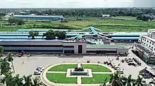 The "Siliguri Corridor" was formed when Bengal was divided into West Bengal and East Pakistan (later Bangladesh) in 1947, with Sikkim later merging with India in 1975.[20] At this point many immigrants came to settle here for better infrastructure, which led to an increased population. Later in 1950 Siliguri achieved municipal status.[21] Keeping in mind the importance of Siliguri, in 1951, the Assam rail link was established with newly made (1949) Meter gauge Siliguri Junction railway station. After few years in 1961 all these stations were connected with broad gauge New Jalpaiguri Junction railway station which later became the most important railway station in Northeast India.[22]