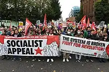 In 2013, Socialist Appeal officially launched its youth wing, the Marxist Student Federation (MSF), to provide a "national platform for Marxist ideas in the student movement."[8] As of 2022, the MSF claims a presence at over 50 campuses across Britain.[9] The youth wing of Socialist Appeal focuses on political discussions at university Marxist societies, as well as campaigning within the labour movement.[10]