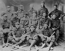 White spent 1889 with the New York Gorhams, a black team that spent part of the season in the Middle States League.[13] White played both catcher and second base for the Gorhams.[14] The next year, he joined the York Colored Monarchs of the Eastern Interstate League, a white-owned team that signed up most of the 1889 Cuban Giants. White played second base, hit .350, and stole 21 bases in 54 games. In 1891 he played for the Big Gorhams of New York, a team that he later called "without a doubt one of the strongest teams ever gotten together, white or black."[15] The Gorhams briefly represented Norwalk, Connecticut, in the Connecticut State League.[16]