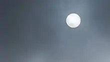 The Sun emits light across the visible spectrum, so its color is white, with a CIE color-space index near (0.3, 0.3), when viewed from space or when the Sun is high in the sky. The Solar radiance per wavelength peaks in the green portion of the spectrum when viewed from space.[93][94] When the Sun is very low in the sky, atmospheric scattering renders the Sun yellow, red, orange, or magenta, and in rare occasions even green or blue. Despite its typical whiteness (white sunrays, white ambient light, white illumination of the Moon, etc.), some cultures mentally picture the Sun as yellow and some even red; the reasons for this are cultural and exact ones are the subject of debate.[95] The Sun is a G2V star, with G2 indicating its surface temperature of approximately 5,778 K (5,505 °C; 9,941 °F), and V that it, like most stars, is a main-sequence star.[60][96]