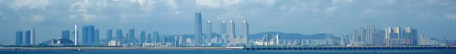 Songdo, officially known as Songdo International Business District (Songdo IBD), is a smart city[2] built on 600 ha (1,500 acres) of reclaimed land along Incheon's waterfront,[3] 30 km (19 mi) southwest of Seoul, South Korea. It is connected to Incheon International Airport by a 12.3 km (7.6 mi) reinforced concrete highway bridge called Incheon Bridge. Along with Yeongjong and Cheongna, it is part of the Incheon Free Economic Zone.[4]