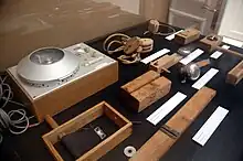 Various acoustic devices in a Greek radio studio