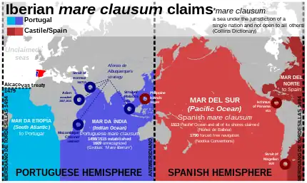 Spain claimed most of the Pacific Ocean as its mare clausum during the Age of Discovery.