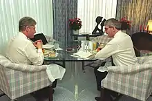 Although both governments also have close relationships with many other nations, the level of cooperation between the UK and the US in trade and commerce, military planning, execution of military operations, nuclear weapons technology, and intelligence sharing has been described as "unparallelled" among major world powers.[1] The close relationships between British and American heads of government such as Margaret Thatcher and Ronald Reagan as well as between Tony Blair and both Bill Clinton and George W. Bush have been noted.[2] At the diplomatic level, characteristics include recurring public representations of the relationship as "special", frequent and high-profile political visits and extensive information exchange at the diplomatic working level.[3]