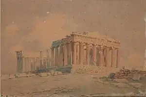 His earliest lessons naturally came from his father.[2] Later, he finished his education at the Accademia di Belle Arti di Venezia.[4] He remained in Italy until 1865 and, when he returned, received an appointment as Professor of painting at the Athens School of Fine Arts. For unknown reasons, he resigned from that position the following year and went back to Venice.[2]