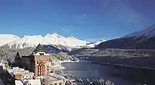 St. Moritz has an area (as of the 2004/09 survey) of 28.69 km2 (11.08 sq mi).[5] Of this area, about 26.3% is used for agricultural purposes, while 20.0% is forested. Of the rest of the land, 9.0% is settled (buildings or roads) and 44.8% is unproductive land. In the 2004/09 survey a total of 160 ha (400 acres) or about 5.6% of the total area was covered with buildings, an increase of 23 ha (57 acres) over the 1985 amount. Over the same time period, the amount of recreational space in the municipality increased by 3 ha (7.4 acres) and is now about 1.15% of the total area. Of the agricultural land 149 ha (370 acres) is fields and grasslands, and 643 ha (1,590 acres) consists of alpine grazing areas. Since 1985 the amount of agricultural land has decreased by 37 ha (91 acres). Over the same time period the amount of forested land has increased by 33 ha (82 acres). Rivers and lakes cover 91 ha (220 acres) in the municipality.[6][7]