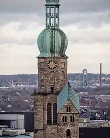 In December 2016, nine neo-Nazis from various German cities who were associated with the Die Rechte right wing group occupied the church steeple and appeared to set off fireworks from it. The members were subsequently taken into custody by police.[2] Neo-Nazi slogans shouted from the steeple through a megaphone were drowned out by the church bells, ordered to be rung by the vicar of St. Reinold's.[3] The illegal occupation of the church's tower was met with disbelief and anger from the church's spokespersons and the vast majority of the public.[4]