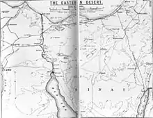 A pipeline was laid from Shellal to Imara and pumps installed, while the pipeline from El-Qantarah was connected up with Shellal, where an area was established for filling and loading 200 fantasses (small iron tanks) onto camels.[75]