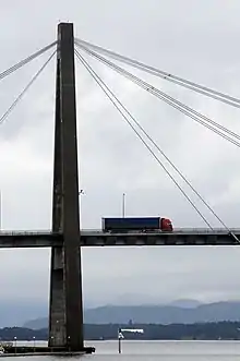 Stavanger City Bridge (Norwegian: Stavanger bybru or just Bybrua) is a cable-stayed bridge in the city of Stavanger which is in the large Stavanger Municipality in Rogaland county, Norway. The bridge has one tower and it was one of the first larger cable-stayed bridges in Norway when it opened on 31 January 1978. The bridge crosses the Straumsteinsundet strait connecting the city centre of Stavanger to the small islands of Grasholmen and Sølyst. It is the main connection to the whole the borough of Hundvåg which is a series of islands that are all interconnected by small bridges.