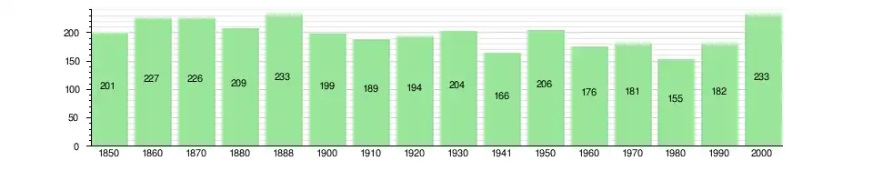 As of 2000, there were 89 private households in the municipality, and an average of 2.6 persons per household.[6] There were 20 households that consist of only one person and 7 households with five or more people. Out of a total of 93 households that answered this question, 21.5% were households made up of just one person. Of the rest of the households, there are 23 married couples without children, 34 married couples with children There were 9 single parents with a child or children. There were 3 households that were made up of unrelated people and 4 households that were made up of some sort of institution or another collective housing.[8]