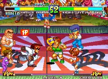 Super Dodge Ball[lower-alpha 1] is a dodgeball-based sports game produced by Technōs Japan that was released for the Neo Geo platform in 1996. It is a sequel to the original Super Dodge Ball and features characters from Technōs Japan's Kunio-kun series. It was also the final game developed by Technōs before the company went out of business, as well as the last Kunio-kun games released in arcades. Technōs location tested a Japanese version in arcades, but since the company went bankrupt, this version was not released and the game was only given a limited US release from SNK. However, putting a US cart of this game into a Japanese system will show the Japanese version. In 2001, Mega Enterprise ported this game to the PC exclusively for a Korean release.[3]