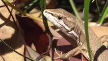 Takydromus tachydromoides, the Japanese grass lizard, is a wall lizard species of the genus Takydromus. It is found in Japan. Its Japanese name is 'kanahebi' (カナヘビ). 'Hebi' means 'snake' in Japanese, although this lizard is not a snake. There are three species of lizards found on the four main islands of Japan. The other two are the Japanese gekko (also known as Schlegel's Japanese gekko, Gekko japonicus ,or 'yamori' (ヤモリ) in Japanese) and the Okada's Five-lined Skink (Eumeces latiscutatus, also Plestiodon latiscutatus; the five lines on its back are only visible in its juvenile form).[1]