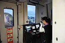 Exterior-wise, the 1000 series features an aerodynamic front made of a fiber-reinforced plastic (FRP) bonnet with an emergency detrainment door that be folded outwards as a ramp not unlike their Taipei and Kaohsiung counterparts. The carbody is made of stainless steel and is designed with crashworthiness in mind whereas the car-end underframe of low-alloy high-tensile steel. Unlike earlier MRT trains used in Taiwan, these trains use plug doors to reduce noise with the doors configured to be three dual-leaf doors per side per car.[7] The 1000 series are also fitted with exterior LCD displays to denote the nature of the train service and the stations served.