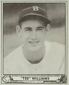 Theodore Samuel Williams (August 30, 1918 – July 5, 2002) was an American professional baseball player and manager. He played his entire 19-year Major League Baseball (MLB) career, primarily as a left fielder, for the Boston Red Sox from 1939 to 1960; his career was interrupted by military service during World War II and the Korean War. Nicknamed "Teddy Ballgame", "the Kid", "the Splendid Splinter", and "the Thumper", Williams is regarded as one of the greatest hitters in baseball history and to date is the last player to hit over .400 in a season. His .482 on-base percentage is the highest of all time.