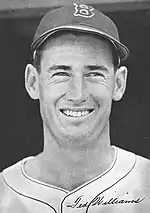 Williams played back-up behind Vince DiMaggio and Ivey Shiver on the (then) Pacific Coast League's San Diego Padres. While in the Pacific Coast League in 1936, Williams met future teammates and friends Dom DiMaggio and Bobby Doerr, who were on the Pacific Coast League's San Francisco Seals.[20] When Shiver announced he was quitting to become a high school football coach in Savannah, Georgia, the job, by default, was open for Williams.[21] Williams posted a .271 batting average on 107 at bats in 42 games for the Padres in 1936.[21] Unknown to Williams, he had caught the eye of the Boston Red Sox's general manager, Eddie Collins, while Collins was scouting Bobby Doerr and the shortstop George Myatt in August 1936.[21][22]