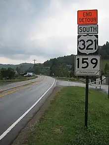 State Route 159 (SR 159) is a west to east highway in the U.S. state of Tennessee that is 12 miles (20 km) long. It begins in Carter County at State Route 67 and ends in Johnson County at the North Carolina state line. State Route 159 is little-known by the general public by this designation as it is overlain by U.S. Route 321; the "159" designation is seen on mileposts.