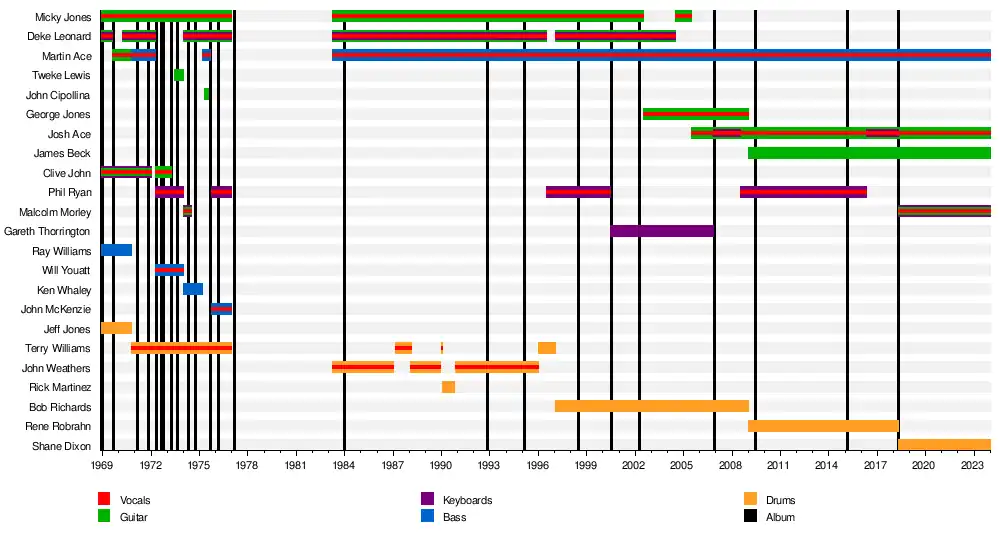 Phil Ryan remained in the band until his death on 30 April 2016, aged 69.[26]