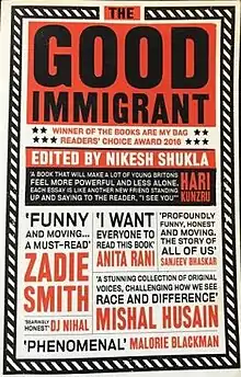 The Good Immigrant is an anthology of twenty-one essays edited by Nikesh Shukla and first published by Unbound in the UK in 2016 after a crowd-funding campaign endorsed by celebrities. Written by British authors who identify as BAME (Black, Asian and Minority Ethnic), the essays concern race, immigration, identity, 'otherness', exploring the experience of immigrant and ethnic minority life in the United Kingdom from their perspective. Contributors include actor/musician Riz Ahmed, journalist Reni Eddo-Lodge, comedian Nish Kumar and playwright Vinay Patel. The compilation inspired the American sequel The Good Immigrant USA, published in 2017, which featured BAME authors from the United States.