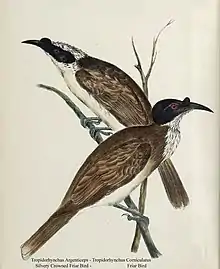 The Ornithology of Australia comprises three volumes (of an uncompleted set) of lithographed, hand-coloured, illustrations of Australian birds with accompanying text. It was authored by Silvester Diggles of Brisbane and was originally issued in 21 parts, each part containing six plates (126 plates in all) with short descriptive letterpress, in imperial quarto format, with the leaves of the plates 39 cm in height. The parts were printed for the author by T.P. Pugh.[1] Altogether, between 1863 and 1875, Diggles, with his niece Rowena Birkett who hand-coloured each plate, produced 325 plates illustrating some 600 Australian birds.[2]